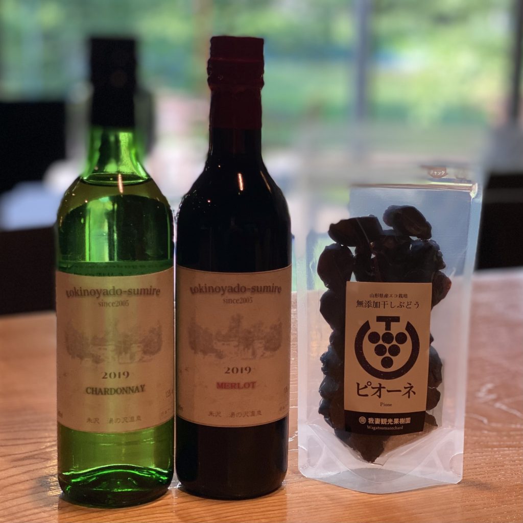 オリジナルワインは米沢の浜田さんとのコラボ♪も我妻観光果樹園さんの米沢産レーズンと共に。