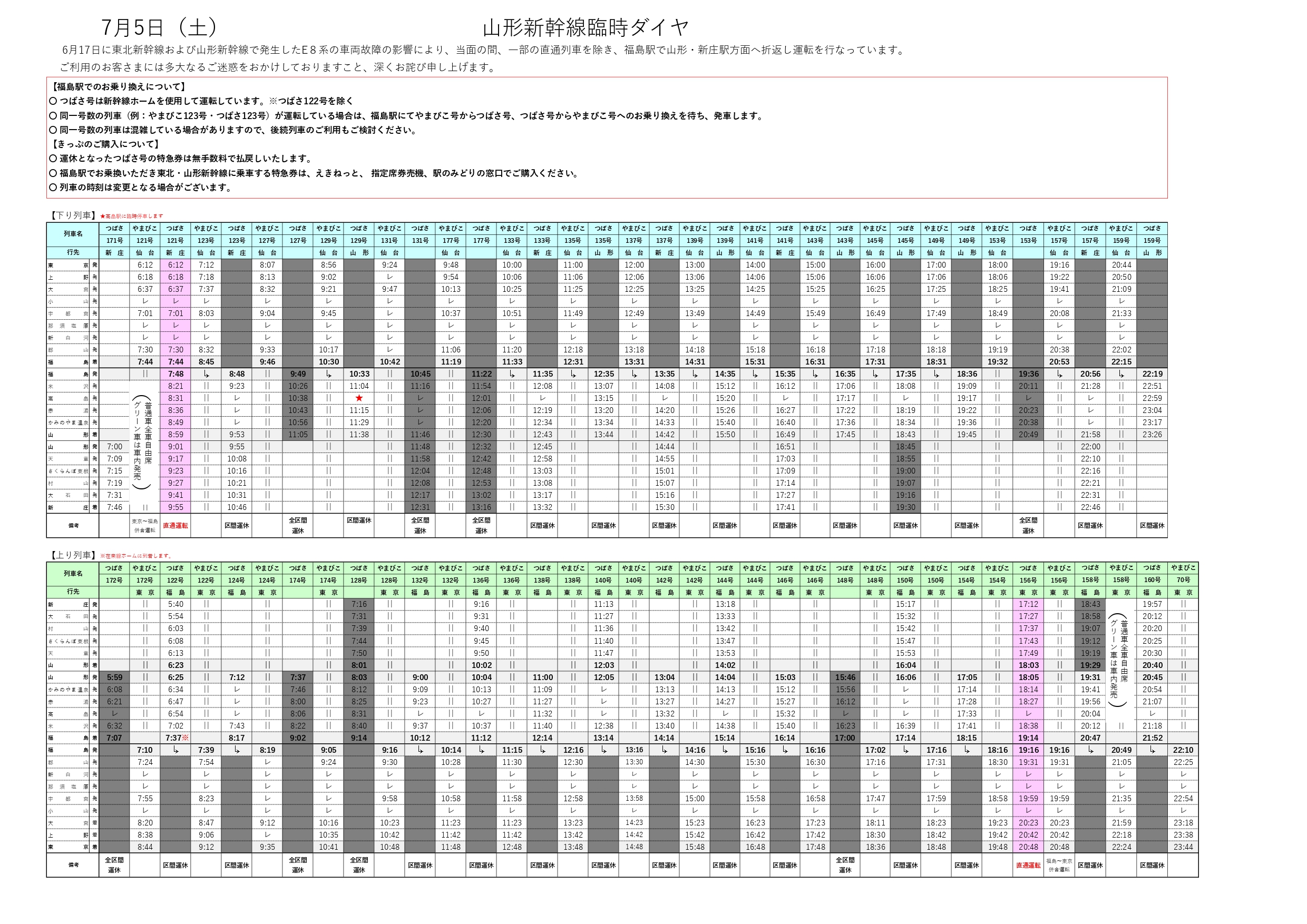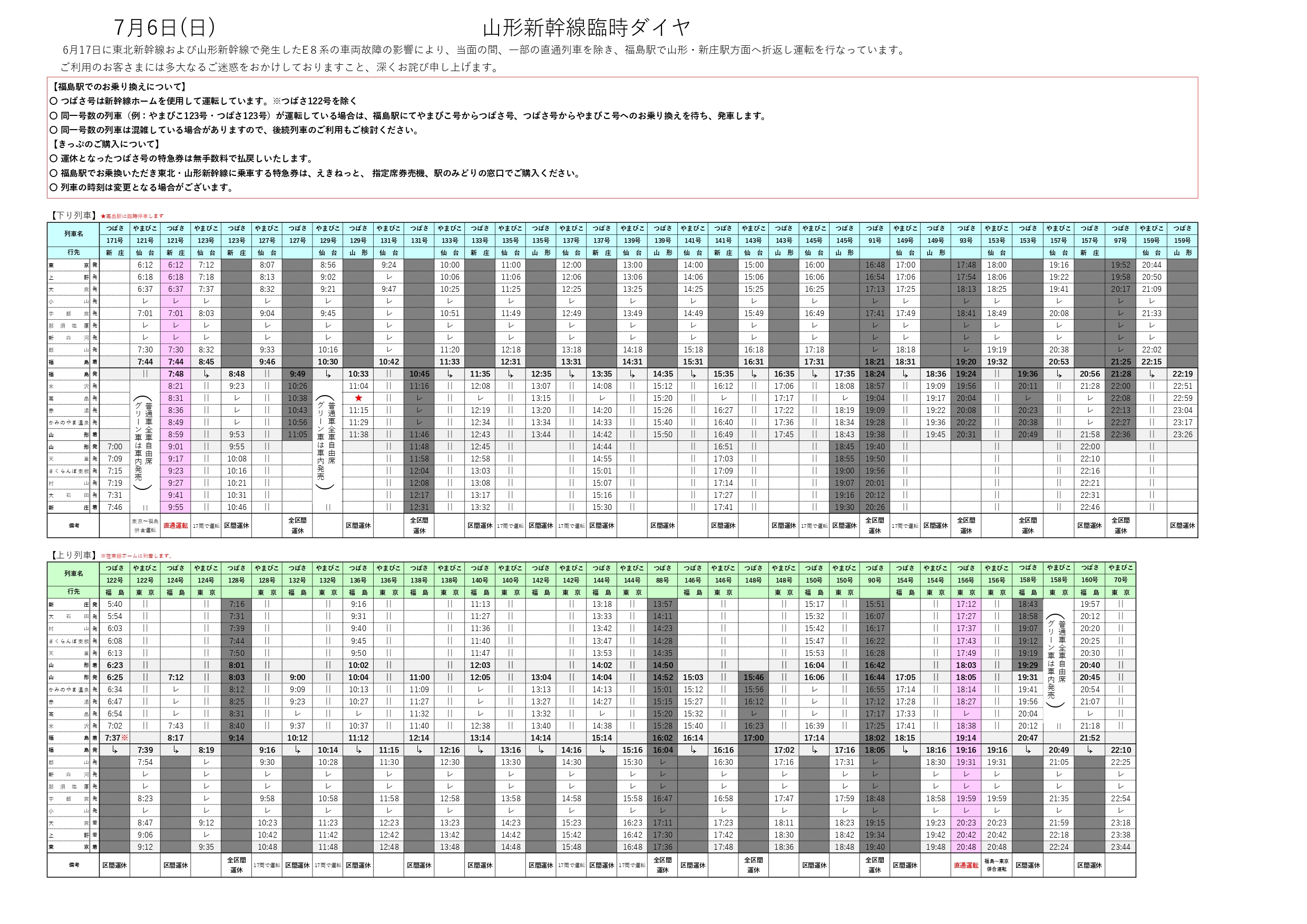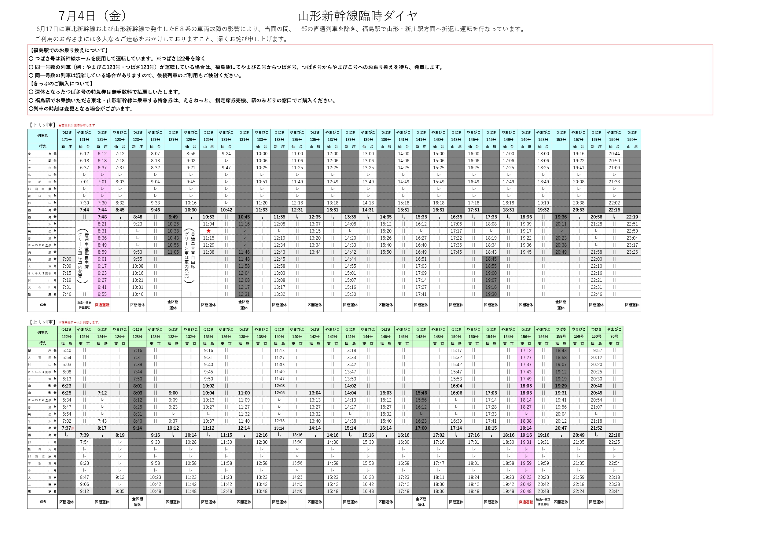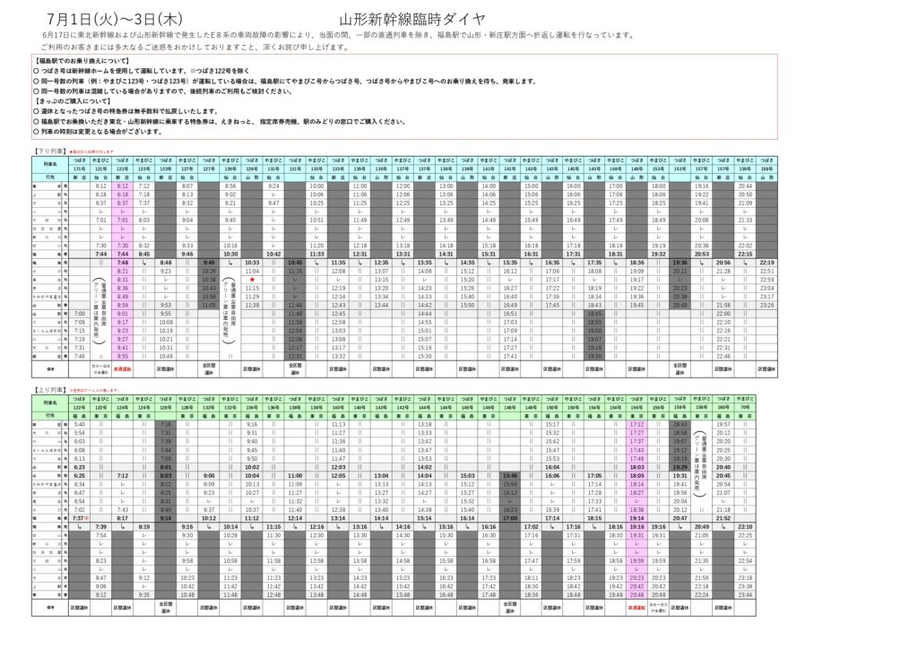 【確定】(日本語)20250701~03 山形新幹線臨時ダイヤ時刻表