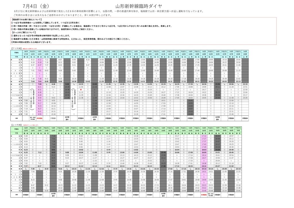 【7月1日(火)~6日(日)運転計画】東北新幹線・山形新幹線の臨時ダイヤについて
