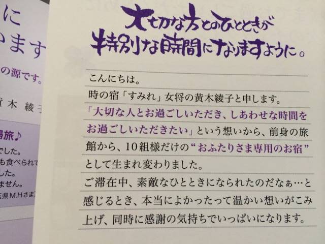 それが 大切な方とのんびりと、他の方を気にせず過ごせるすみれ時間のある「時の宿すみれ」だということを。