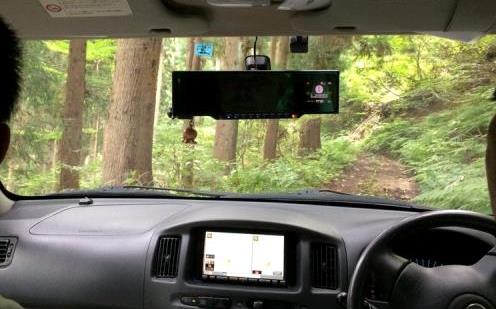 当日は歩いて山を上るつもりだったのですが、そう思っていたのはわたしだけのことで 県の方が車で行けるところまで車で行きましょうとおっしゃったことから 往復で500mも歩かずにすみました。でも 車で行くには道幅が狭く 途中からは両脇の草木がフロントガラスにあたり アドベンチャーなドキドキ気分を味わうことができました(汗)しかしながら皆さんは慣れた様子です。