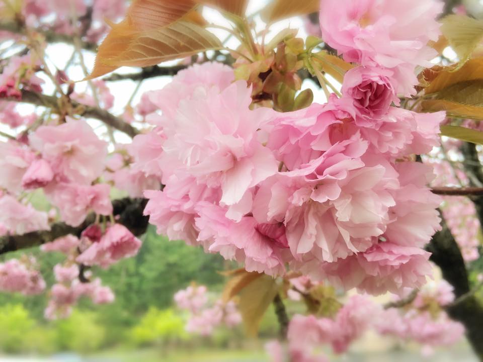 八重桜のピンク。ツツジのオレンジ。と言っても何色と言ったら正しいのかわからない蛍光色のような鮮やかさに奇跡や芸術を感じたり。