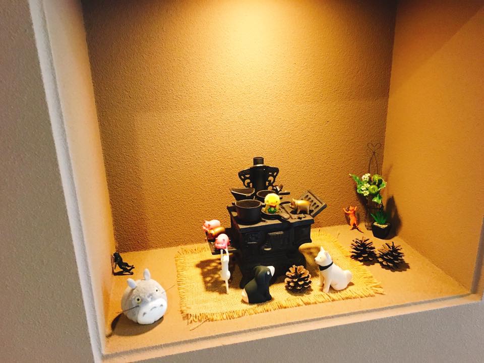「すみれのぶたコーナー」劇場のメンバーさんたちを 玄関横の飾り棚にお引越ししたところ 「あれーーおかしいな~数が少なくなった~」と 辺りを見てみると なんとその隣の飾り棚にいるではありませんか!?