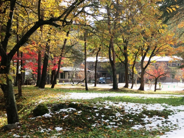 これから紅葉もピークか!?というところで 先日から急に降り出した雪に少し困惑しましたが 雪景色もまたきれいで ちょうどご宿泊で訪れてくださっていたお客様は とっても喜んでいらっしゃいました。