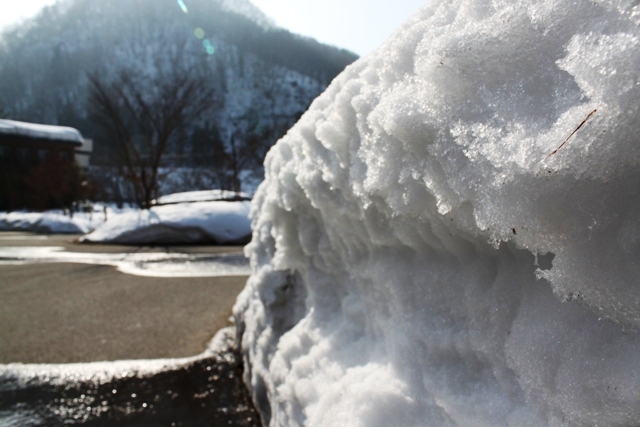 まだまだ雪もあり 寒い米沢なのですが 日中の雪の融け方がとっても早くて 屋根や木に積もっている雪の雫が 流れるように落ちてきているし 積もった雪は下の方からどんどん融けてきているようです。