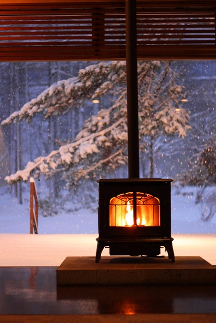 ペレットストーブの灯が とっても 鮮やかに 映えて