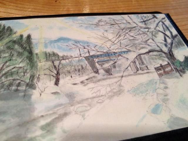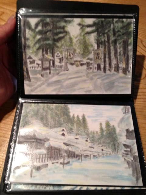 朝霧が晴れてきた頃のコーヒータイムで お客様がポストカードに描いた水彩画を見せてくださいました。これまで すみれに訪れた際に撮った写真を基に ご趣味で始められた透明水彩画を描いてくださっていたのです。