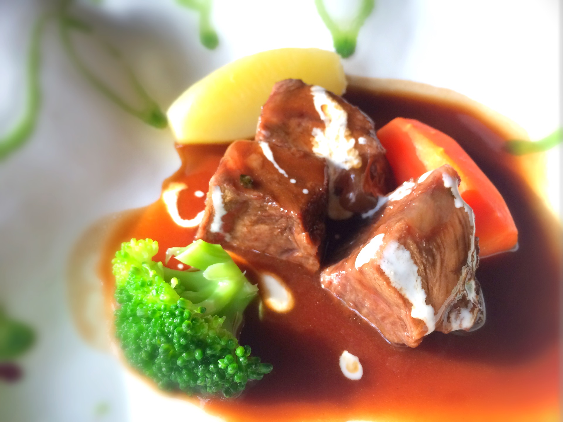 写真を掲載しているお料理は 『米沢牛ほほ肉のブルゴーニュ風赤ワイン煮込み』。