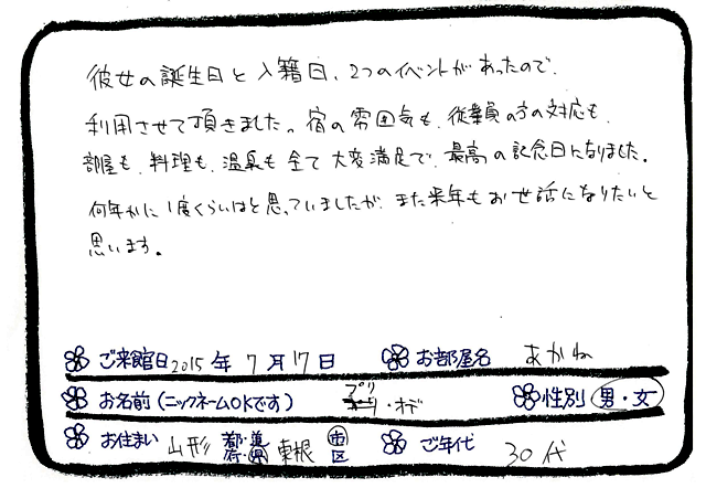 Categories : ご滞在いただいたお客様からの素敵なメッセージ