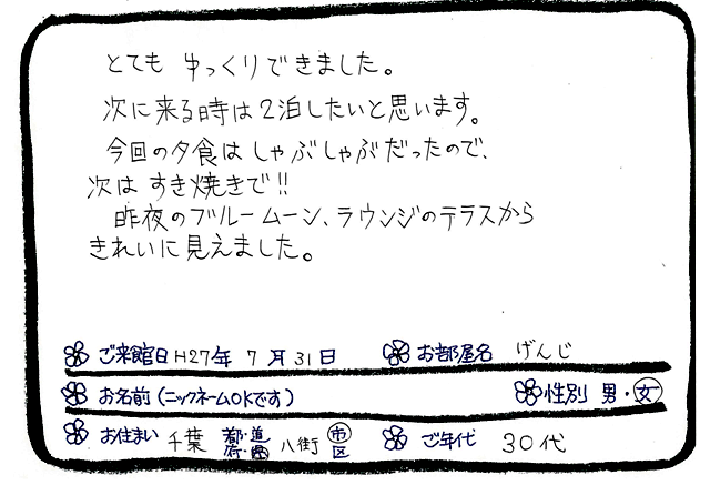 Categories : ご滞在いただいたお客様からの素敵なメッセージ