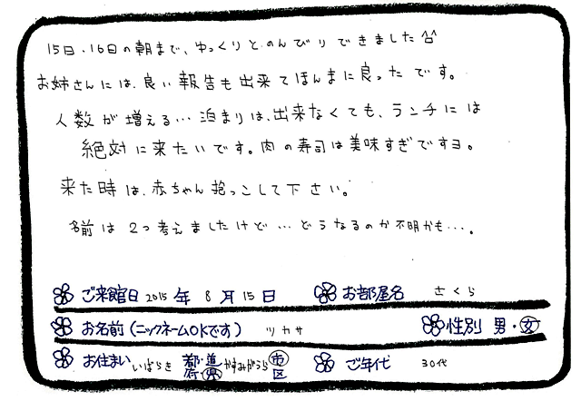 平成27年8月15日 「さくら」 ご宿泊