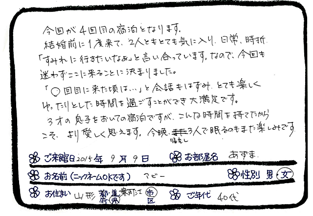 Categories : ご滞在いただいたお客様からの素敵なメッセージ