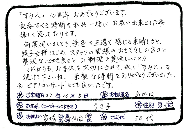 Categories : ご滞在いただいたお客様からの素敵なメッセージ