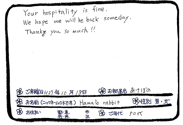 Categories : ご滞在いただいたお客様からの素敵なメッセージ