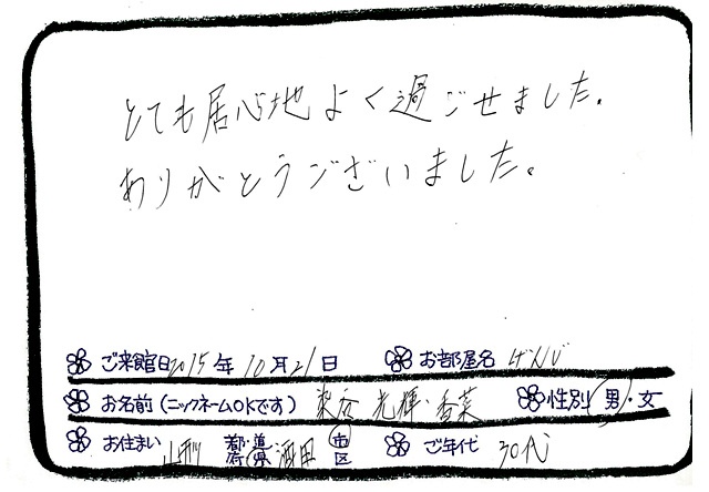 Categories : ご滞在いただいたお客様からの素敵なメッセージ