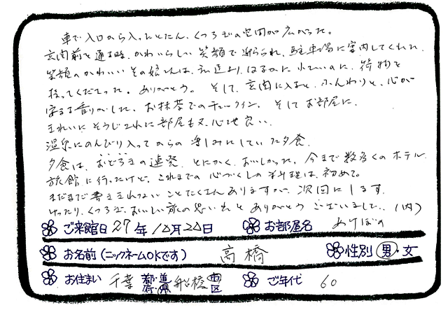 Categories : ご滞在いただいたお客様からの素敵なメッセージ
