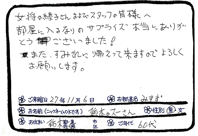 Categories : ご滞在いただいたお客様からの素敵なメッセージ