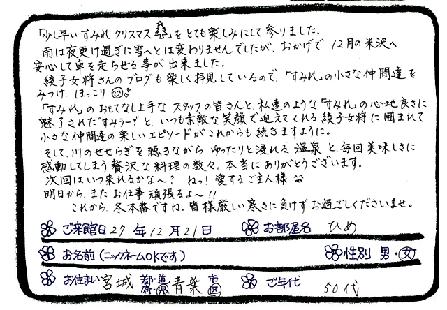 Categories : ご滞在いただいたお客様からの素敵なメッセージ
