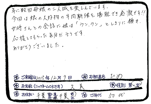 千葉県千葉市からお越しの 久美様 より