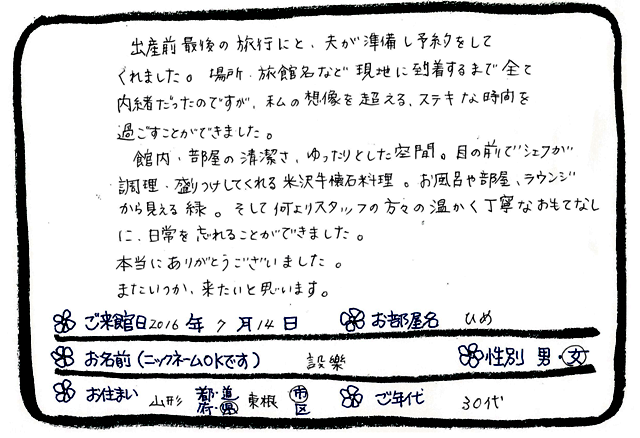 Categories : ご滞在いただいたお客様からの素敵なメッセージ