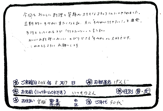 宮城県からお越しの いつもの2人様 より