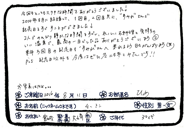 Categories : ご滞在いただいたお客様からの素敵なメッセージ