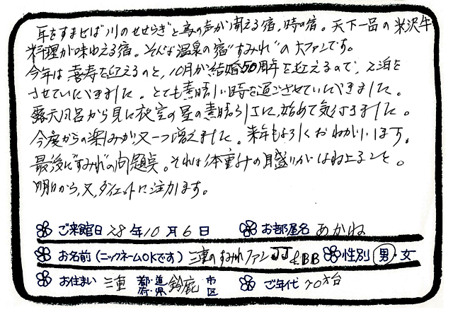 Categories : ご滞在いただいたお客様からの素敵なメッセージ