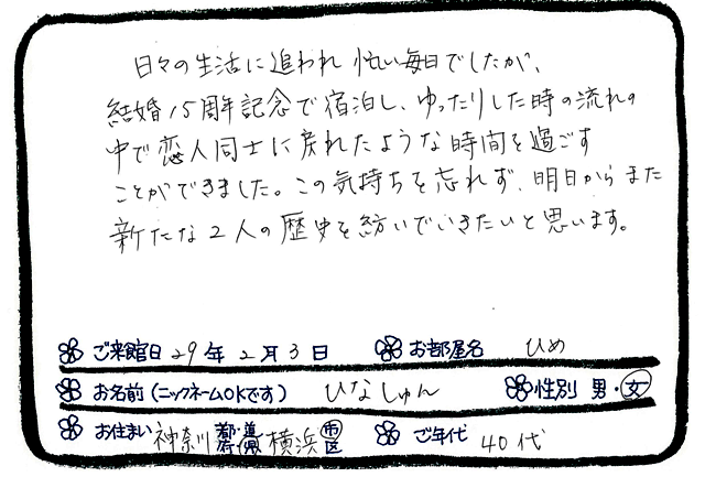 Categories : ご滞在いただいたお客様からの素敵なメッセージ