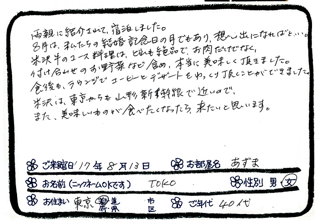 Categories : ご滞在いただいたお客様からの素敵なメッセージ