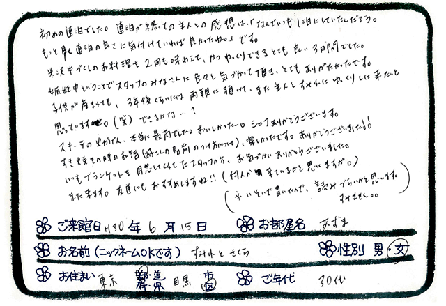 Categories : ご滞在いただいたお客様からの素敵なメッセージ