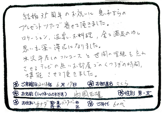 Categories : ご滞在いただいたお客様からの素敵なメッセージ