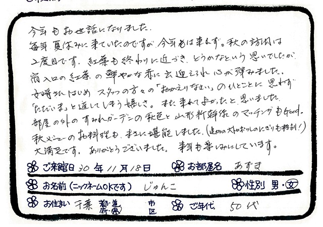 Categories : ご滞在いただいたお客様からの素敵なメッセージ