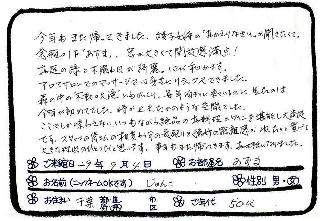 Categories : ご滞在いただいたお客様からの素敵なメッセージ