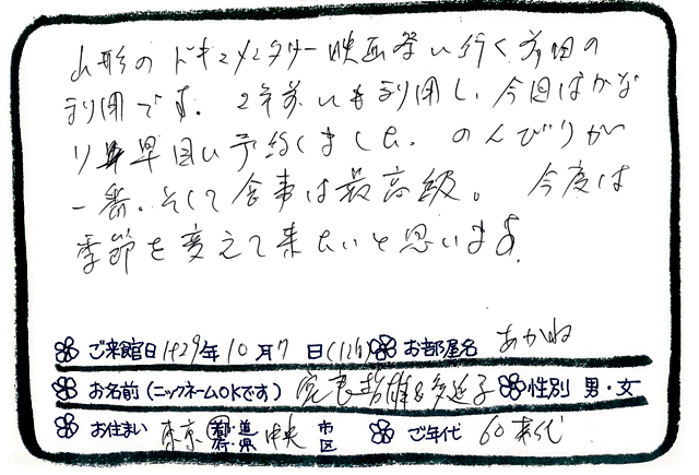 Categories : ご滞在いただいたお客様からの素敵なメッセージ