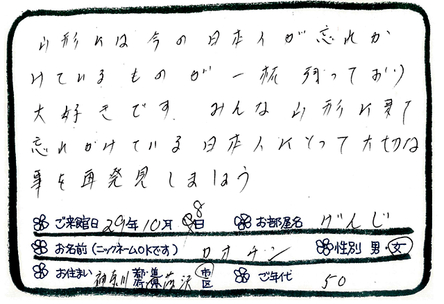 みんな山形に来て 忘れかけている日本人にとって大切な事を再発見しましょう。