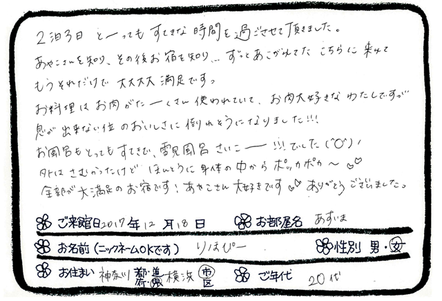 Categories : ご滞在いただいたお客様からの素敵なメッセージ