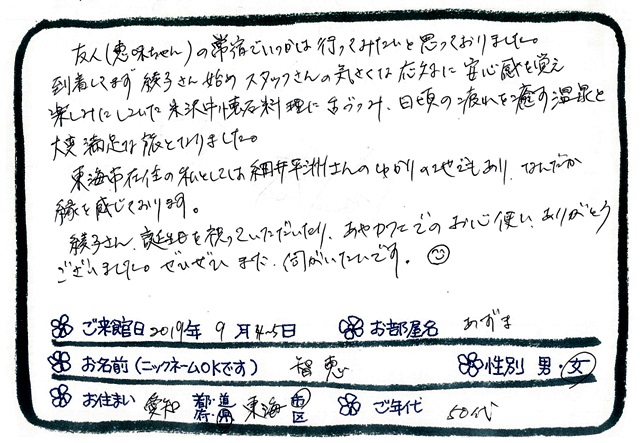 Categories : ご滞在いただいたお客様からの素敵なメッセージ