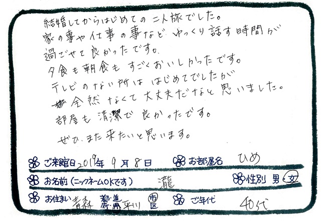Categories : ご滞在いただいたお客様からの素敵なメッセージ