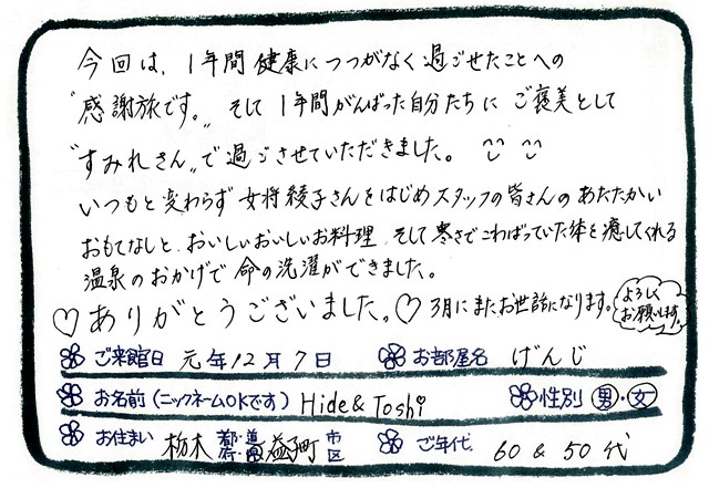 Categories : ご滞在いただいたお客様からの素敵なメッセージ