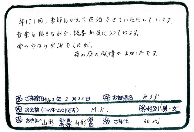 令和2年2月23日 みすず ご宿泊