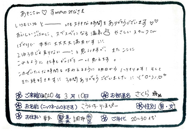 Categories : ご滞在いただいたお客様からの素敵なメッセージ