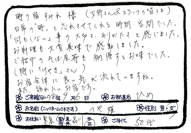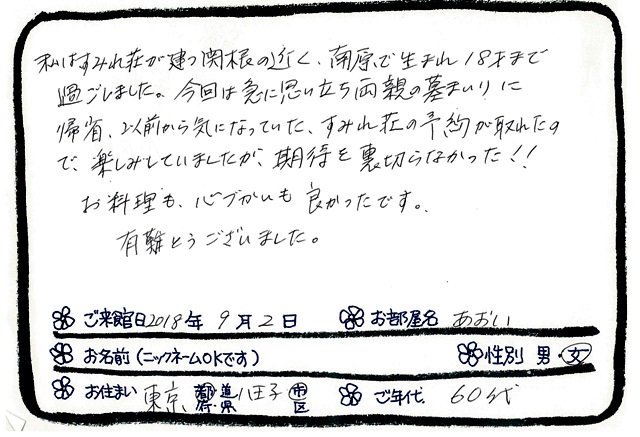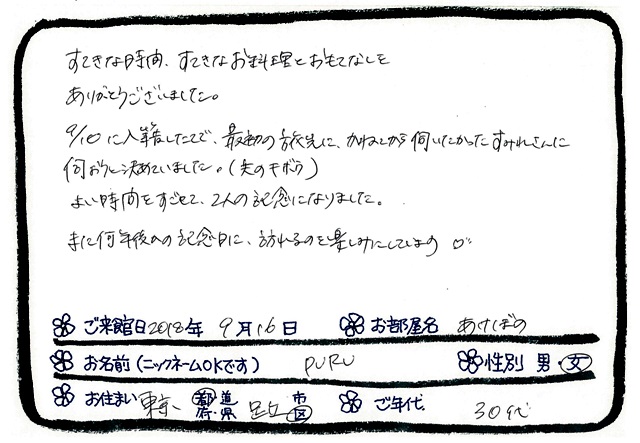 ご滞在いただいたお客様からの素敵なメッセージ