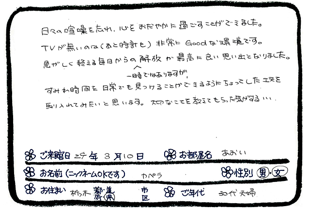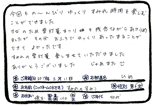 「静かでいやしの温泉を探していました。ピッタリです」誕生日をゆっ