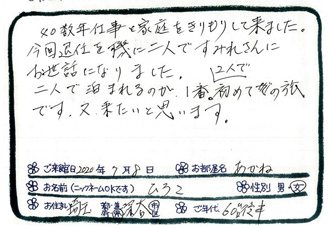 「思いきって来て良かった!久しぶりに夫婦で話してゆっくりできまし
