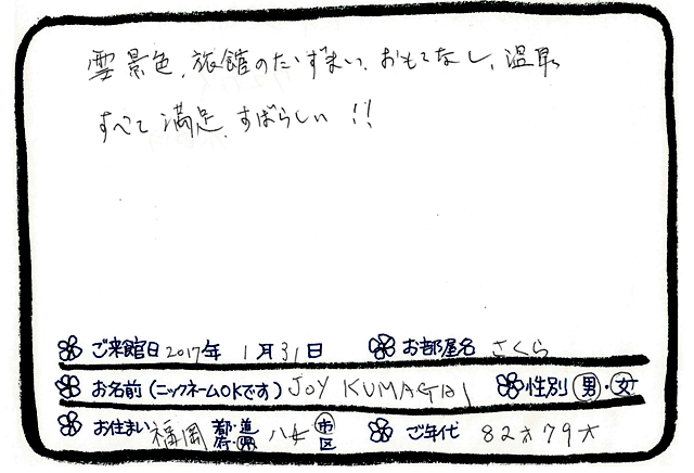 「雰囲気よし、料理よし、温泉よし、女将さんとの会話も楽しかった~