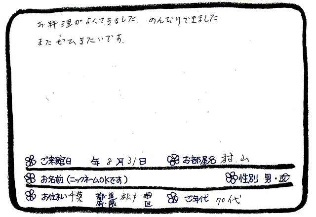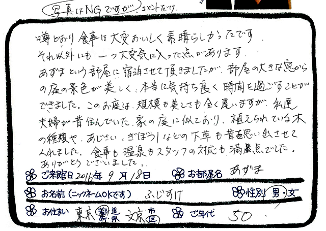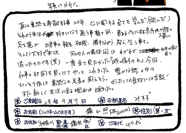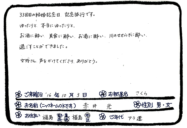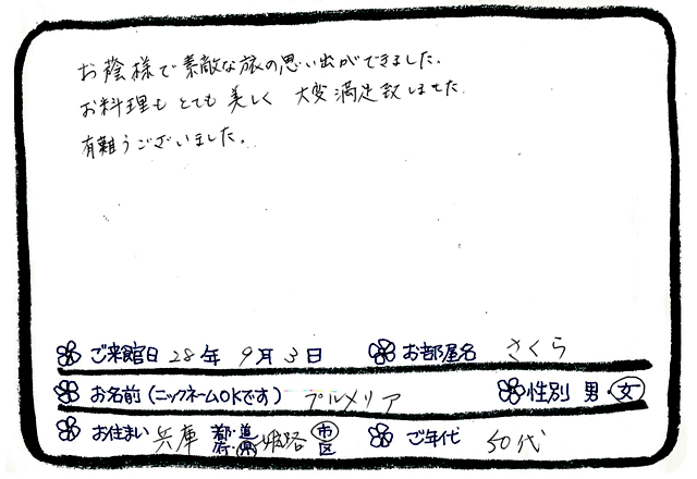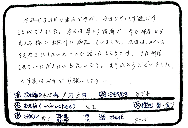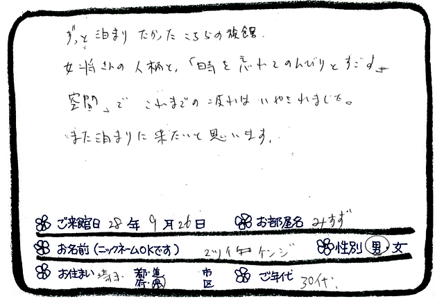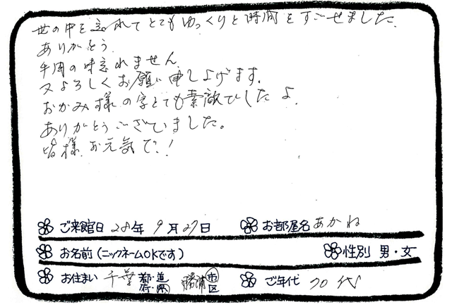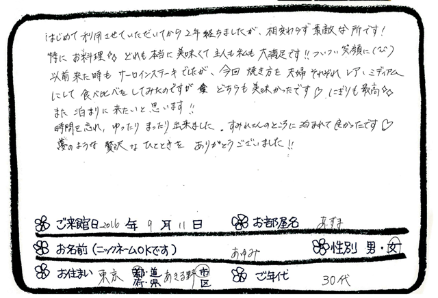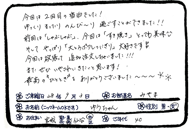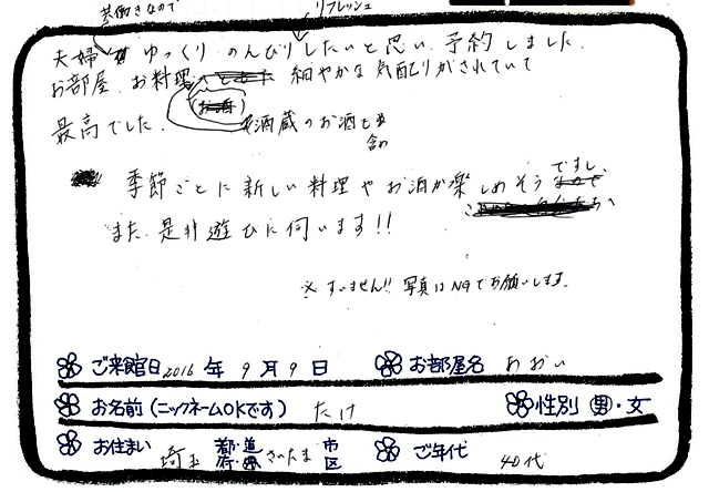 ご滞在いただいたお客様からの素敵なメッセージ