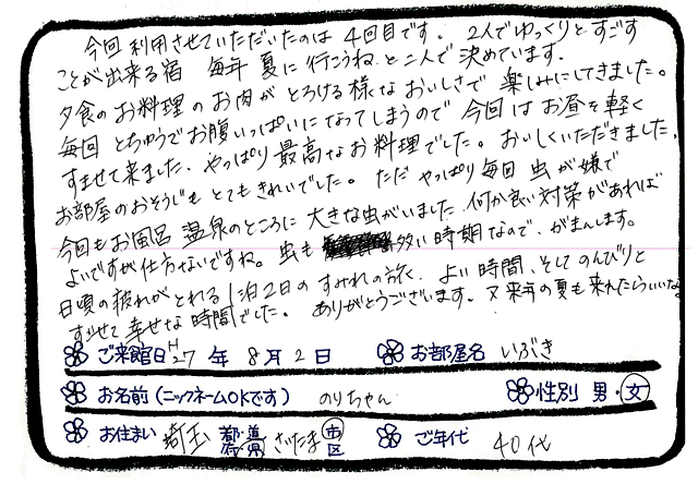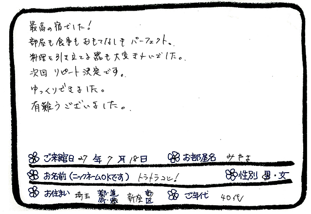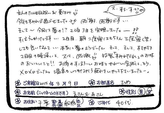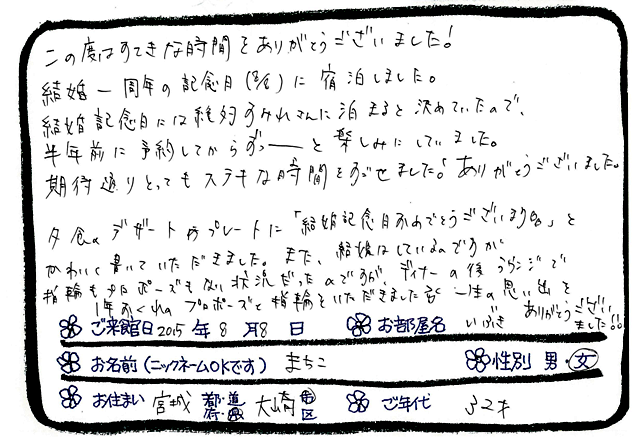「結婚記念日には絶対すみれに泊まると決めていました♪」一生の思い