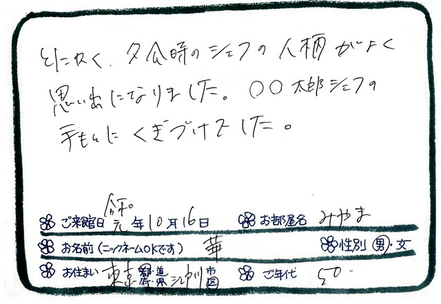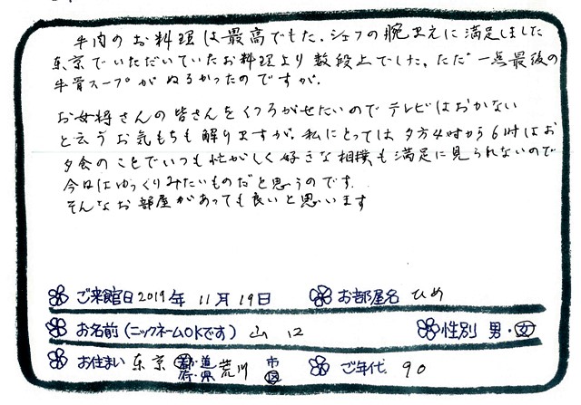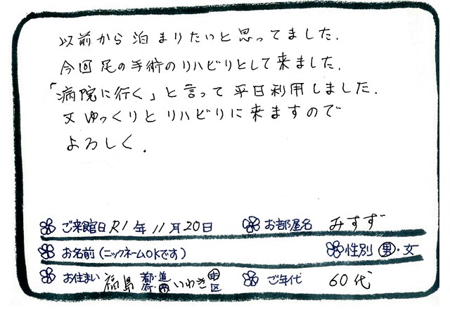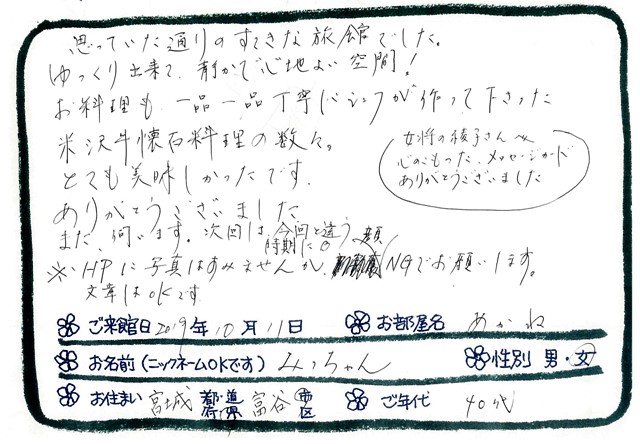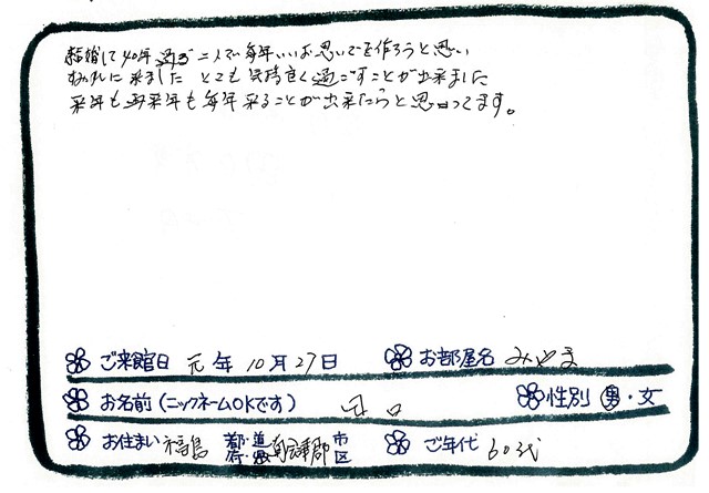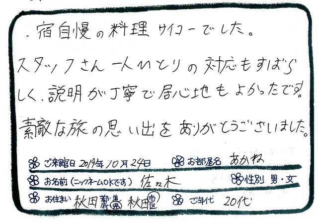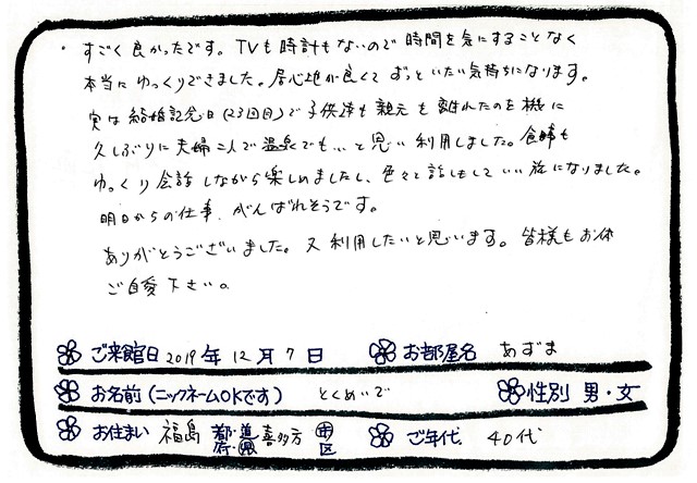 ご滞在いただいたお客様からの素敵なメッセージ