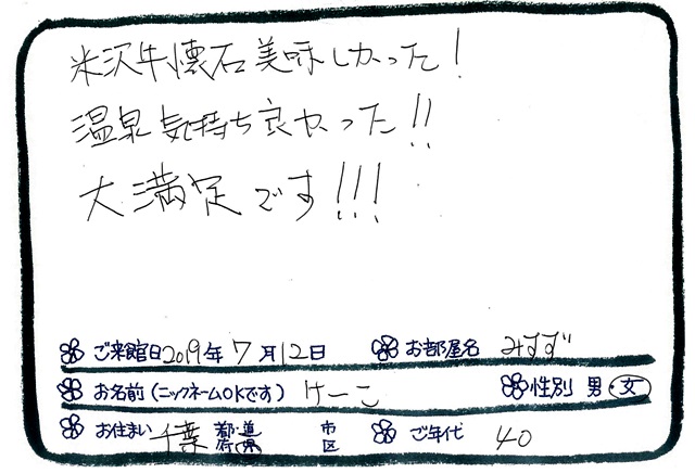 「米沢牛懐石美味しかった!温泉気持ち良かった!!大満足です!!!