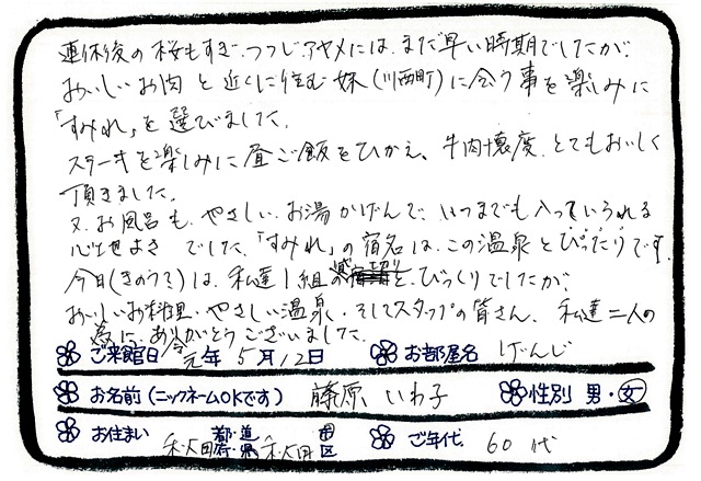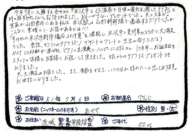 「今年で7回目のすみれ、ゆっくり過ごし疲れが取れました」米沢牛を